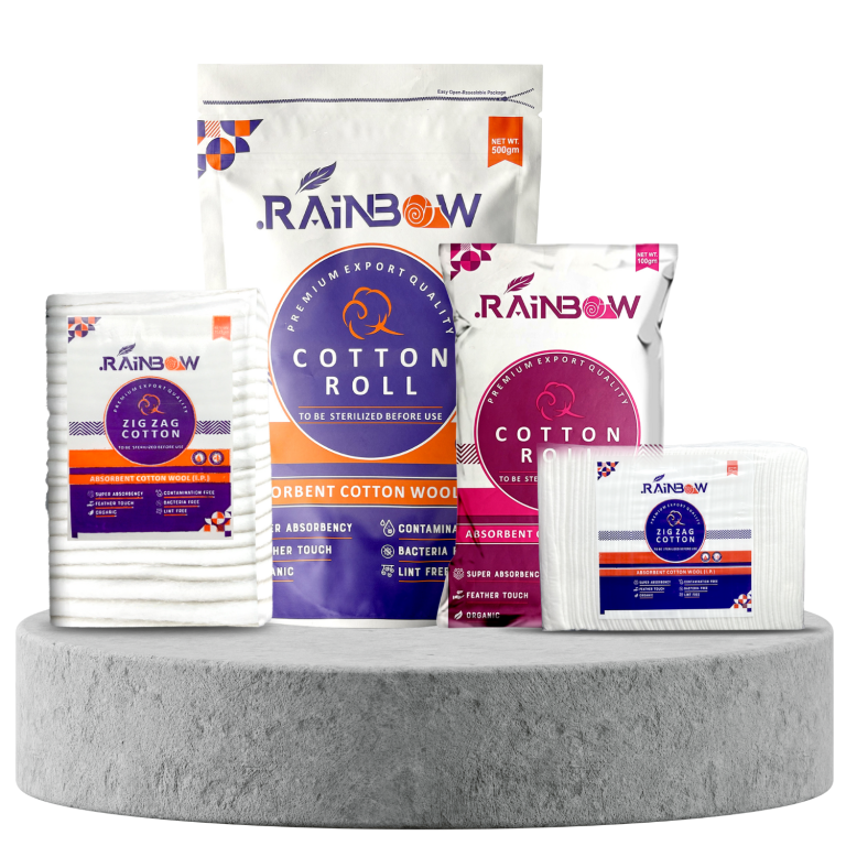 Rainbow Aborbant Cotton Wool, by Surgipro Solutions, a leading manufacturer of premium Absorbent Cotton Wool designed for medical, personal care, and industrial applications. With uncompromising quality standards and state-of-the-art production facilities, we ensure every fiber delivers superior absorbency, exceptional softness, and reliable hygiene.
